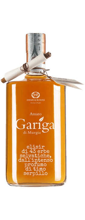 L’Amaro Garìga di Murgia è un elisir digestivo delicatamente amaro, composto da 43 erbe raccolte a mano seguendo la stagionalità e per tale motivo la produzione è limitatissima, con ciascuna bottiglia numerata a mano.