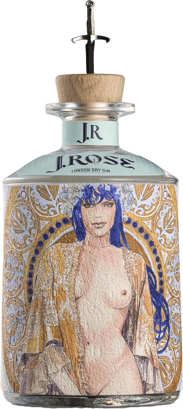 Oltre alla qualità del prodotto, un elemento distintivo di J.Rose Gin sono le sue etichette, frutto di una collaborazione con il famoso fumettista Milo Manara, che le rende vere e proprie opere d'arte.