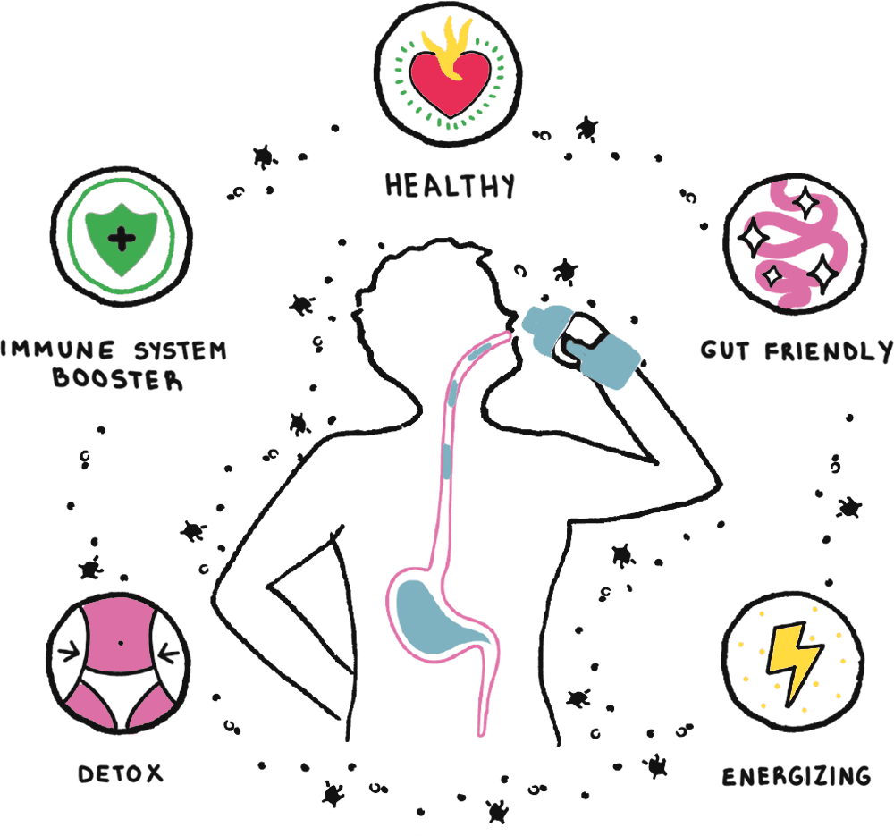 **Detossificazione**: Gli acidi organici presenti nel kombucha, come l'acido glucuronico, possono aiutare il fegato a eliminare le tossine, contribuendo alla detossificazione del corpo.